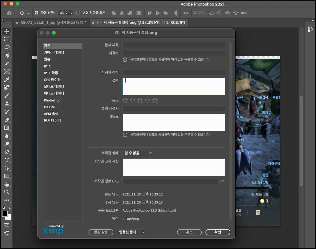 어도비 포토샵 cc 이미지 메타데이터 편집 방법